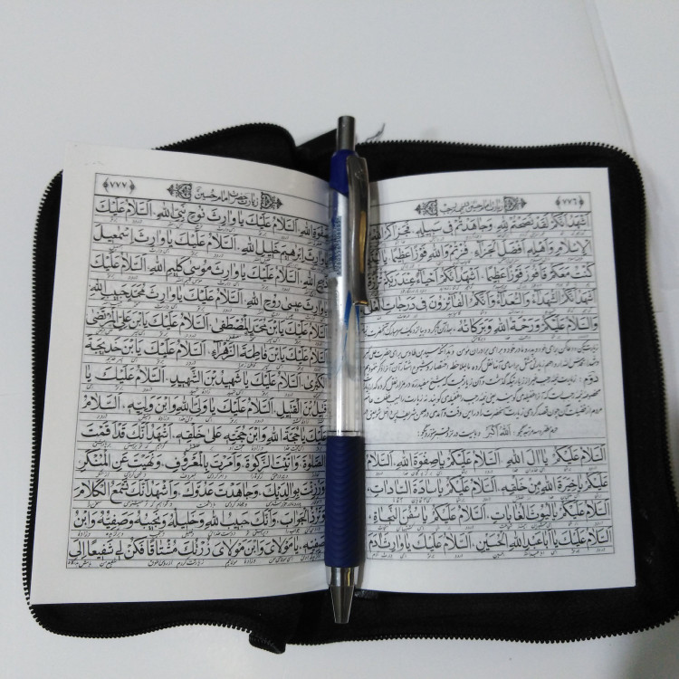 کلیات مفاتیح با کیف کتاب با صفحات دوخته شده خط بسیار زیبا رنگ کیف مشکی چاپ انتشارات الهادی