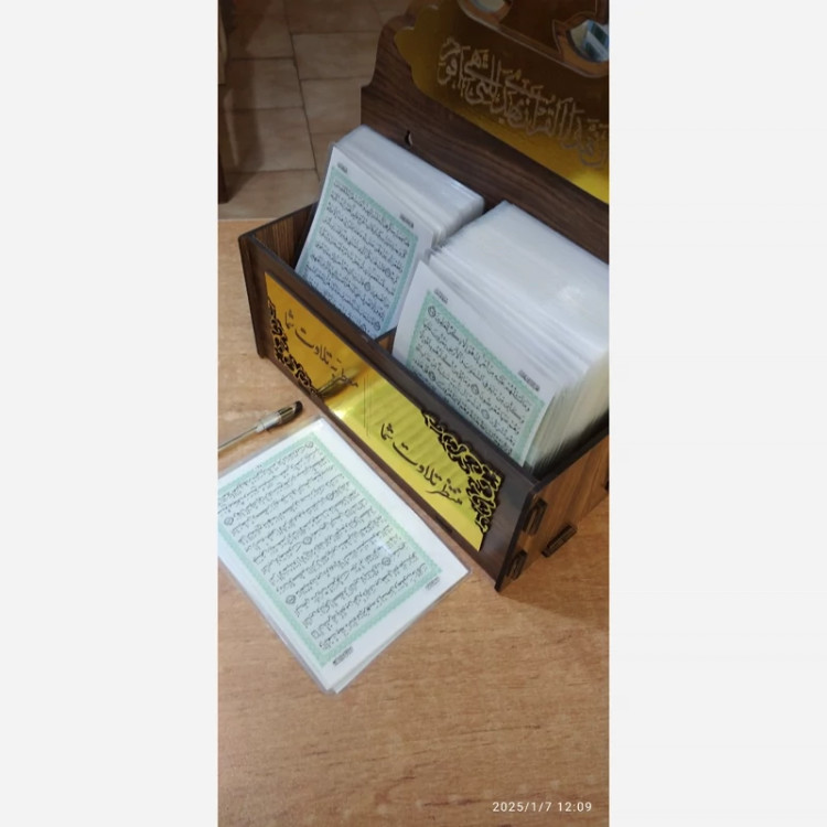 فلش کارت کامل قرآن کریم شامل بیش از 300عدد کارت سایز 15*21 سانت به همراه جعبه چوبی مخصوص دیواری جای مخصوص صفحات خوانده شده و خوانده نشده
