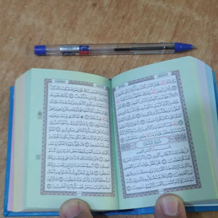 قرآن کریم کامل با کاغذ رنگی قطع کوچکتر از نیم جیبی چاپ لبنان جلد گالینگور ترمو رنگی بسیار زیبا
