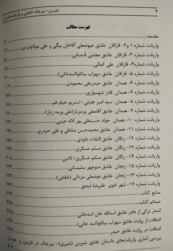 در این کتاب 18 واریانت از این داستان که در استانهای زنجان، قزوین، آذربایجان شرقی و همدان در بین عاشیقها رایج است به کوشش آقای دکتر صلاحی جمع آوری شده .