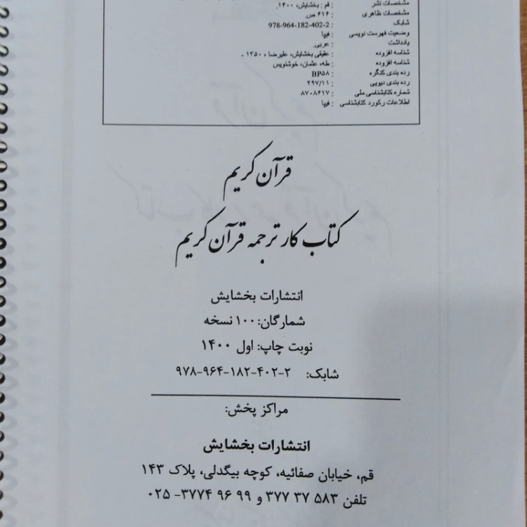 کتاب کار ترجمه قرآن کریم (مصحف تدوین ) 1