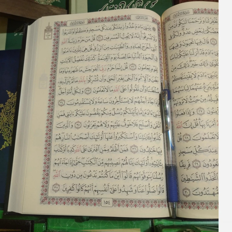قرآن کریم چاپ بیروت کاغذ فوق العاده سبک قطع وزیری رنگ کاغذ لیمویی خط عثمان طه مناسب حفظ چاپ متن دورنگ چاپ اسما جلاله قرمز رنگ جلد مشکی صحافی گالینگور و طلا کوب بسیار زیبا و منحصر چاپ و صحافی این کتاب مخصوص و فوقالعاده است