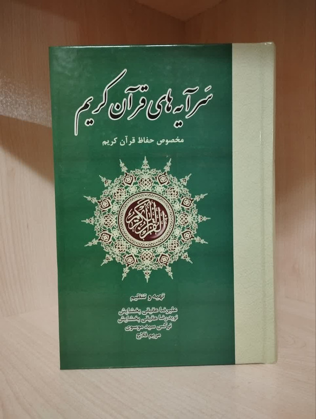سَرآیه های قرآن کریم مخصوص حفاظ قرآن کریم گرامی می باشد.بر اساس خط عثمان طه و 604 صفحه در 15 خط و قطع رقعی ، زمینه سبز روشن کم رنگ؛ و اینکه اولین کلمه هر آیه در پاپین هر صفحه ذکر شده .