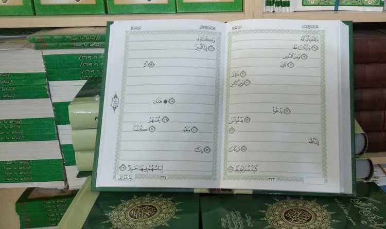 متن کتاب عین قرآن کریم مخصوص حفظ با این تفاوت که فقط اولین کلمه هر آیه را داریم دانش آموز باید دنباله آیه بنویسد .