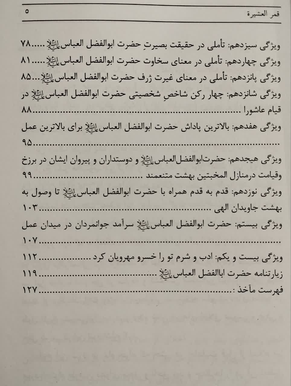 کتاب در اندازه رقعی می باشد، نویسنده محمد شیبانی ؛ قمر العشیرة ( مباحثی پیرامون ابعاد شخصیت والای حضرت ابا الفضل عباس علیه السلام )